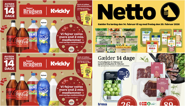Kvickly tilbyder Coca-Cola, Fanta eller Schweppes i flere varianter (125-150 cl) til en pris på kun 11 kr. pr. flaske. Tilbuddet gælder fra fredag den 6. februar til torsdag den 19. februar 2026.